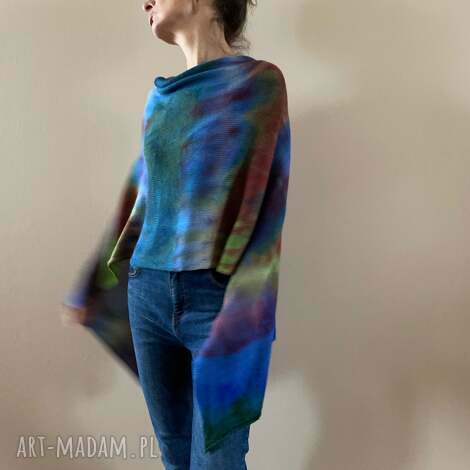 Unikatowa lniana narzutka. Kolorowe poncho ręcznie robione ponczo. Unikatowe ręcznie barwione ponczo ze 100% lnu wysokiej jakości, Uniwersalne na każdą sylwetkę i rozmiar, Przyjazne dla środowiskawyprzedano
