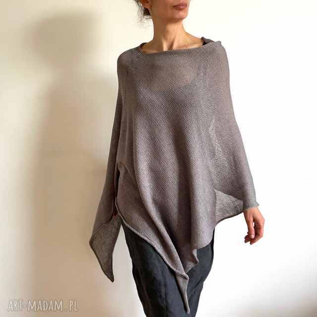 ręcznie robione szara narzutka bawełniana poncho