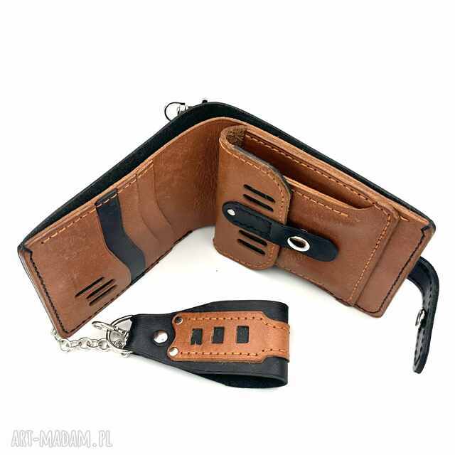 🖤🤎 Czarno-brązowy portfel handmade ze srebrnym łańcuszkiem