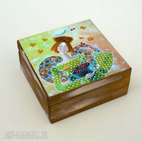 Pudełko drewniane - wiśnie - sweet time. Sypialnie czy pokój dziecka często potrzebuje skrytek na różne skarby, Na wieczku widnieje piękna dziewczyna z wiśniami54,00 zł
