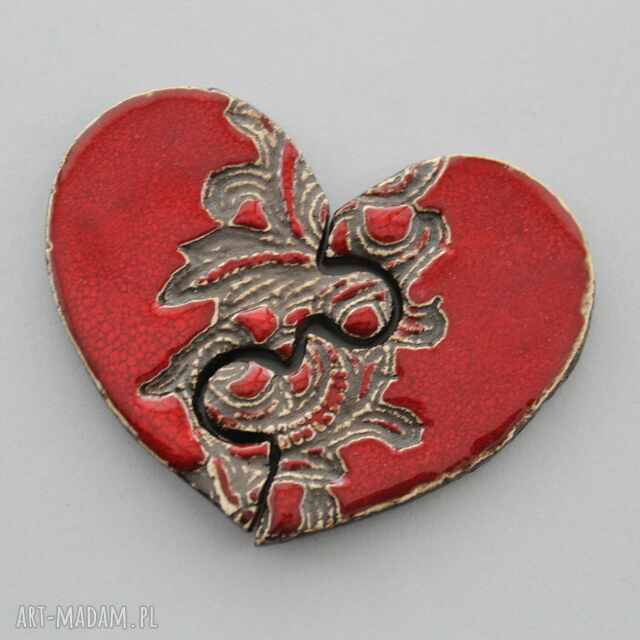 Uroczy zestaw 2 ceramicznych magnesów SERCE PUZZLE w odcieniach czerwieni, beżu i brązu. Idealny na prezent na ślub, parapetówkę lub dla bliskiej osoby. Świetnie sprawdzi się jako magnes przytrzymujący ważne wiadomości dla domowników. Kolory na zdjęciach mogą się różnić, ze względów na ustawienia parametrów monitora.