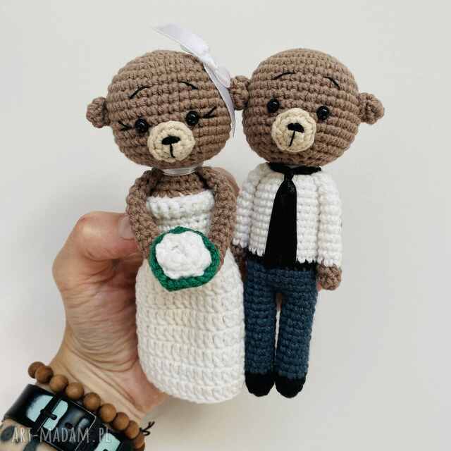 Młoda Para - misie maskotki ręcznie robione na szydełku - idealny prezent ślubny