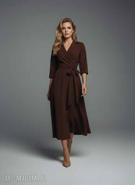 długa sukienka kopertowa - suk172 brąz