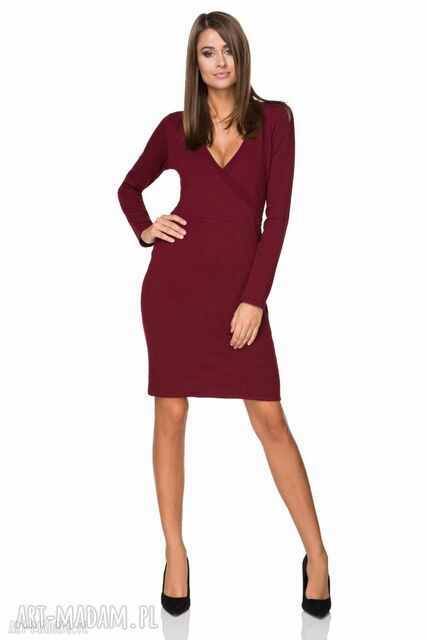 elegancka sukienka z kopertowym dekoltem t215, bordo