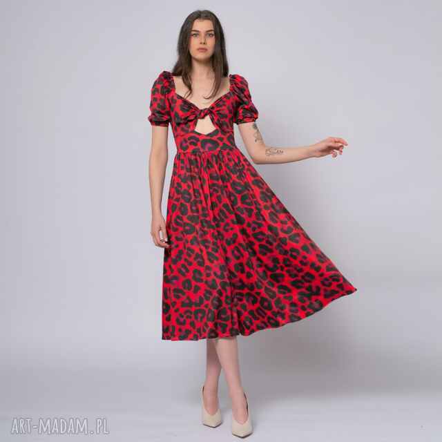 Sukienka „Ola” wykonana z autorskiego jerseyu w ręcznie malowany wzór panterki.