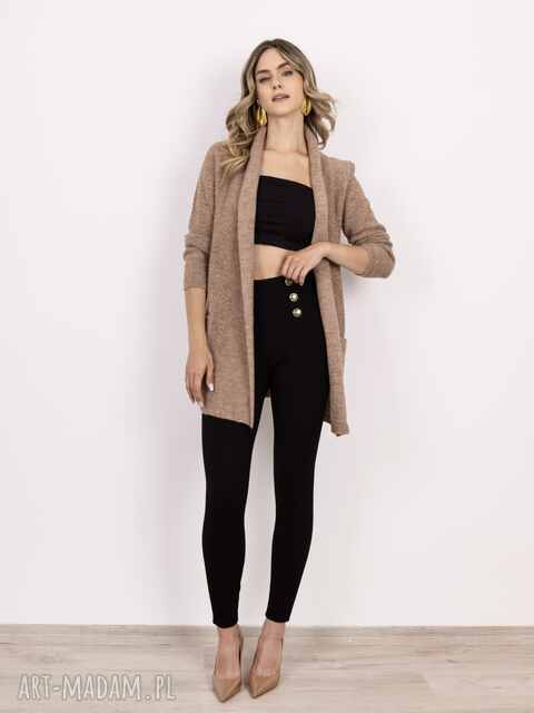 ręcznie robione płaszcz z rolowanym kołnierzem - pa022 mocca mkm swetry