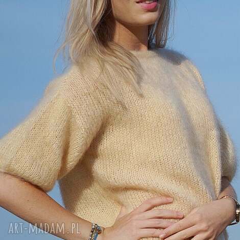 Krótki sweter top z grubej wełny merynosa. Wełniany sweter z warkocz380,00 zł