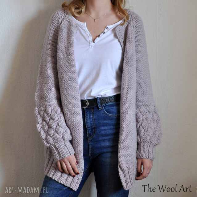 Sweter, kardigan wykonany na drutach z grubej wełny najlepszej jakości alpaki nadającej jedwabistą strukturę i wełny zapewniającej wytrzymałość. Włókna są nieprzetworzone, co oznacza, że wełna została tylko uprana oraz, że przed farbowaniem nie została poddana obróbce chemicznej. Stawiając nacisk na najwyższą jakość wełny, uzyskiwana jest zarówno idealna forma jak i doskonała jakość jej struktury Przytulny i ciepły kardigan niezastąpiony będzie w chodne dni, wyszukany a jednocześnie minimalistyczny wzór i fason, wykonany w pojedynczym egzemplarzu. Kolor szary przełamany delikatnym różem.