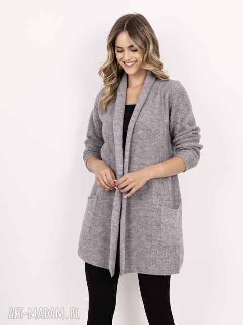 ręcznie zrobione płaszcz z rolowanym kołnierzem - pa022 szary mkm swetry