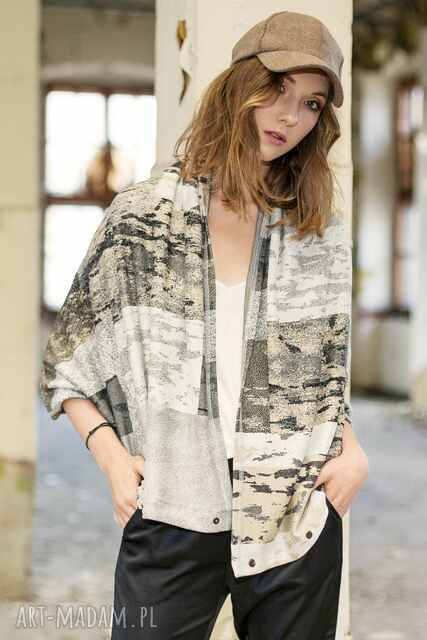 Wielofunkcyjny dzianinowy szal z oryginalnym zapięciem. Dzięki dużej ilości praktycznie rozmieszczonych nap można go nosić na wiele sposobów: jako Szal, Bluzkę, Kamizelkę Pareo (okręcając 2 krotnie wokół bioder i zapinając) lub cokolwiek co podpowiada Ci wyobraźnia. Szal doskonale komponuje się z płaszczami, dzianinowymi swetrami, dzinsowymi kurtkami jak również z odzież z szarego dresu. Żakardowa dzianina jest produkowana w Polsce na specjalne zamówienie.