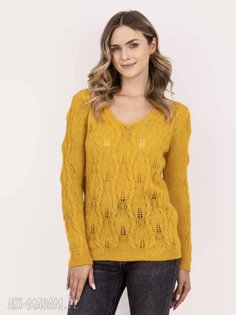 Sweter ażurowy warkocze - SWE342 żółty MKM