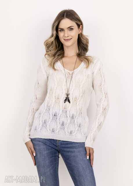 ręcznie robione sweter ażurowy warkocze - swe342 ecru mkm swetry
