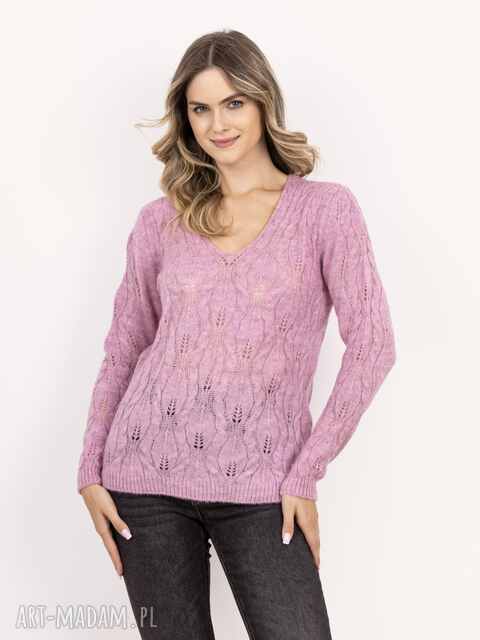 ręcznie robione sweter ażurowy warkocze - swe342 różowy mkm swetry