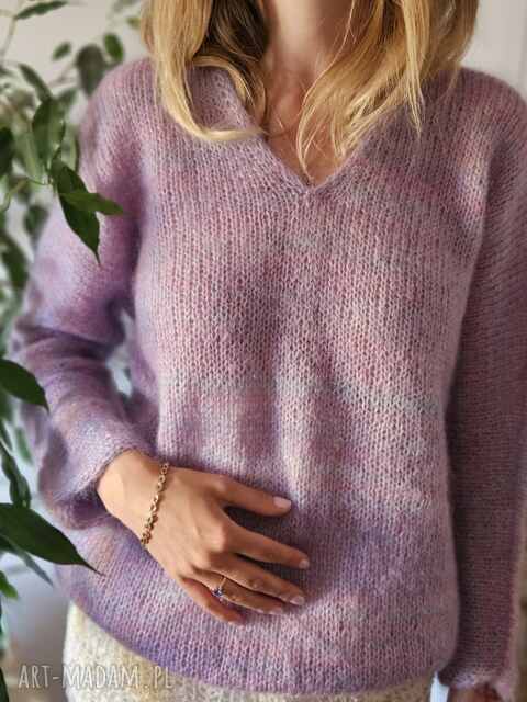 Pomysł na upominki cienki sweter w serek - swe243 koralowy mkm. Swetry handmade Cienki i ciepły sweter w serek, z wąskimi rękawami, Basic, Jakość premium247,00 zł