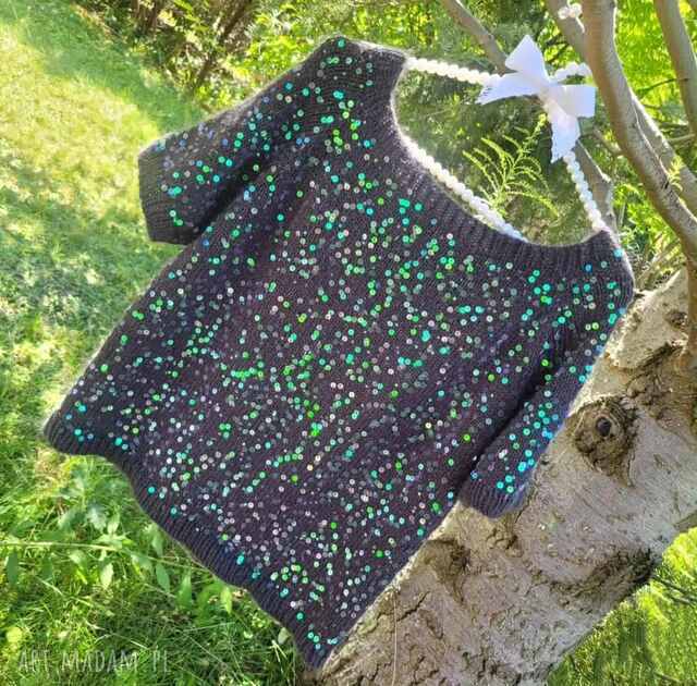Sweterek wykonany na drutach w kolorze szarego grafitu.