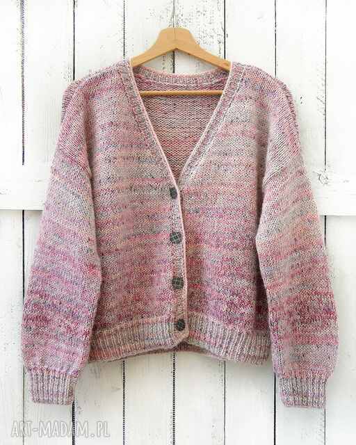 handmade wełniany kardigan z delikatym włoskiem, na guziki swetry
