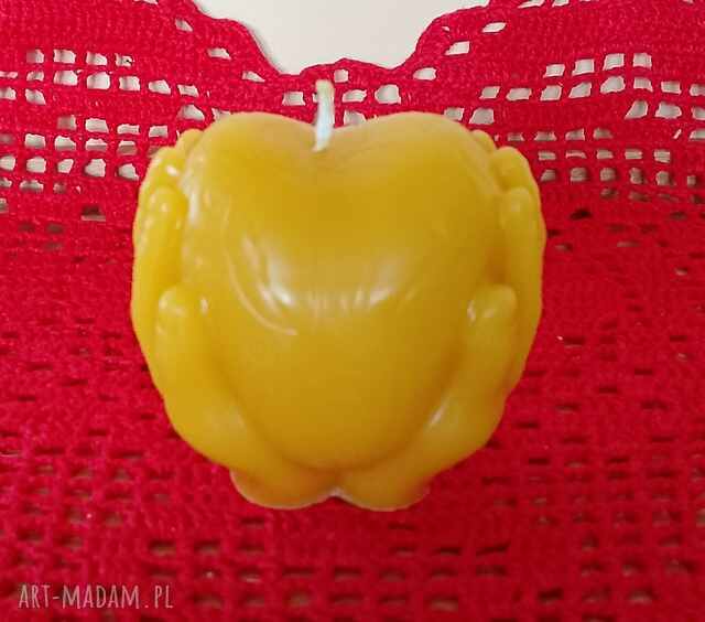 Świeca wykonana ręcznie z prawdziwego (niefałszowanego) wosku pszczelego. Wosk pochodzi z naszej przydomowej pasieki.