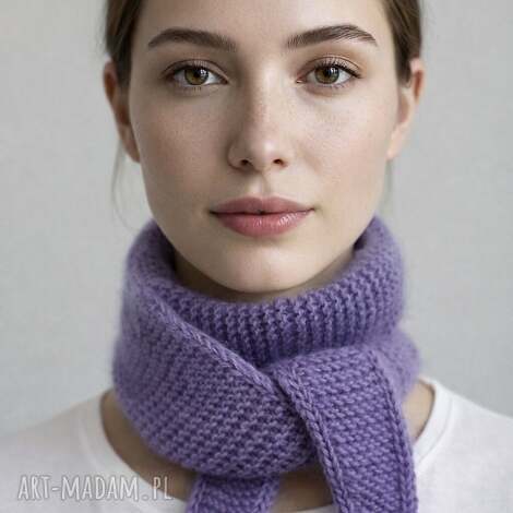 Szalik - lawendowa zamotka. Szaliki ręcznie robione akcesorium oryginalny prezent. Szalik w kolorze lawendowym wykonany ręcznie na drutach z wełny merino z jedwabiem i kid moherem o krótkim włoskuwyprzedano