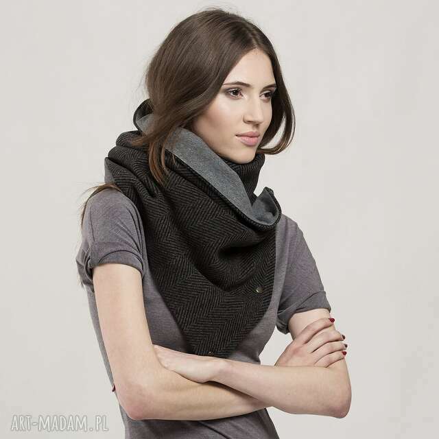 Gruby komfortowy dzianinowo - wełniany szal z bardzo praktycznym zapięciem. Nie musisz go układać i drapować! Po prostu załóż, zapnij - wyglądaj i czuj się świetnie.