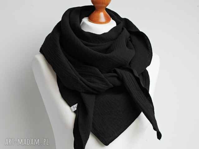 Czarna chusta damska z muślinu bawełnianego - trójkątny szal