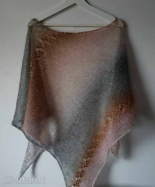 Chusta wykonana na drutach z wysokiej jakości moheru i jedwabiu, duża i lekka, idealny dodatek do różnych stylizacji oraz praktyczne okrycie ramion na plaży.