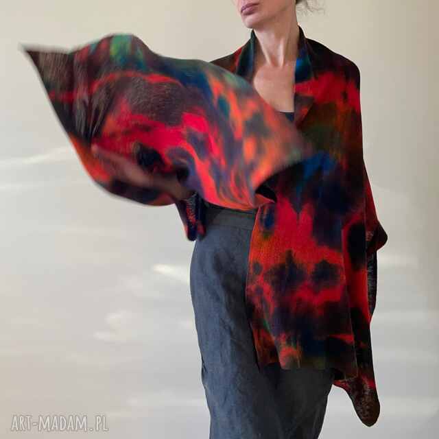 handmade szal z wełny merino z czerwienią szaliki