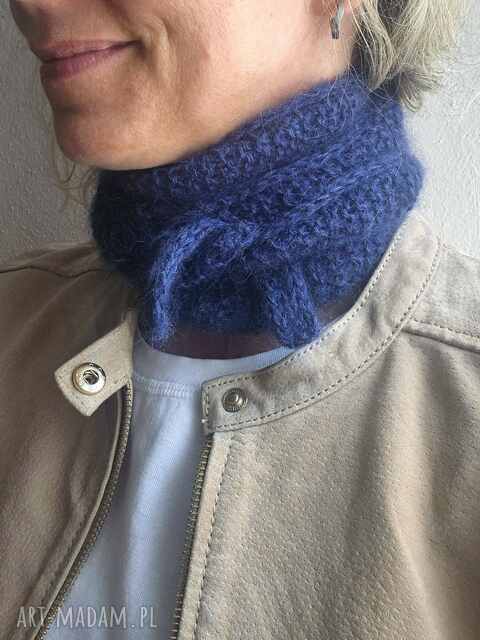 Wyjątkowy mini szalik wykonany ręcznie na drutach z połączenia dwóch szlachetnych nitek: