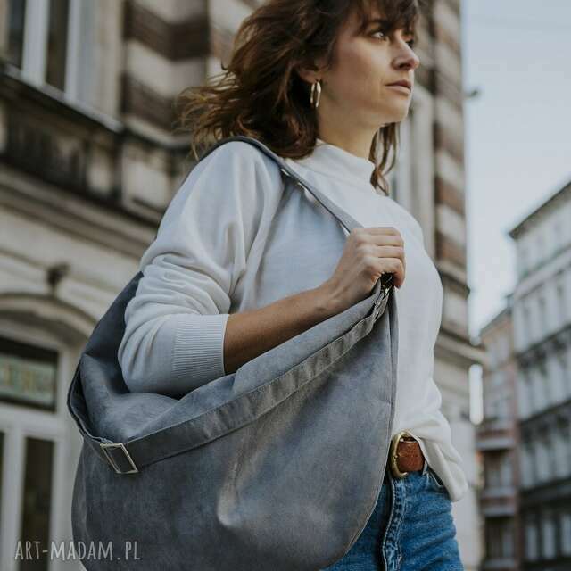 Workowata torba z ekologicznego zamszu na ramię lub na skos.