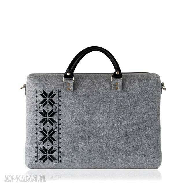 Główną ozdobą prezentowanej torebki z szarego filcu jest czarny haft Romby, autorski wzór marki Farbotka. Tworząc tę torbę projektanka postawiła w nim na trwałość - gwarantuje ją gruby, wytrzymały filc oraz solidne, skórzane rączki. Pomysłowe rozwiązania sprawiają, że torba Romby jest uniwersalna pod względem zastosowań - pomieści wiele rzeczy tj. dokumenty czy podręczny komputer (max. 16"). Torba ma jeden regulowany i odpinany skórzany pasek do noszenia przez ramię oraz dwie małe skórzane rączki. O jakości torebki świadczy również wykończenie wnętrza torby pikowaną podszewką. Dla ułatwienia organizacji przestrzeni wewnątrz torby została stworzona kieszeń na drobiazgi zapinana na zamek, kieszeń bez zamka oraz kieszonka na telefon. Każda oryginalna torebka Farbotka ma logo w środku.