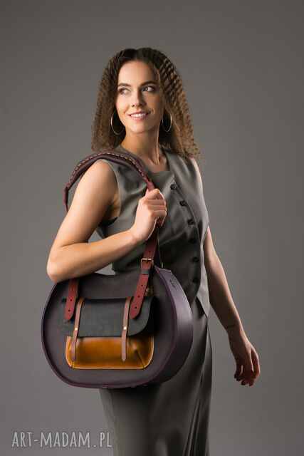 Ekskluzywna torebka skórzana w kolorze śliwkowym, wykonana z najwyższej jakości naturalnej skóry. Jest to produkt ręcznie robiony, co zapewnia niepowtarzalność i precyzję wykonania. Torebka posiada dużą kieszeń na zewnątrz, zapinaną na magnes, oraz dodatkową kieszeń wewnętrzną i zewnętrzną zapinaną na zamek.