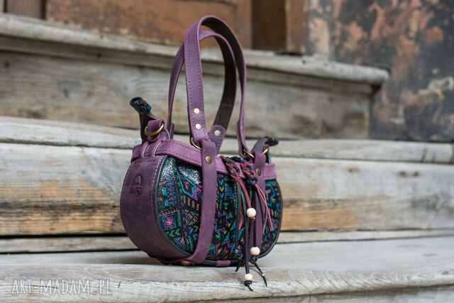 handmade missy mała skórzana boho torebka w kolorze śliwkowym od ladybuq