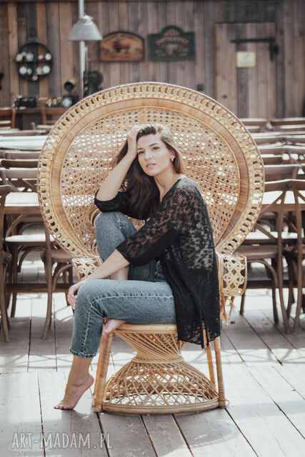 Unikatowa narzutka damska w kolorze czarnym wykonana z bawełnianej fantazyjnej dzianiny.