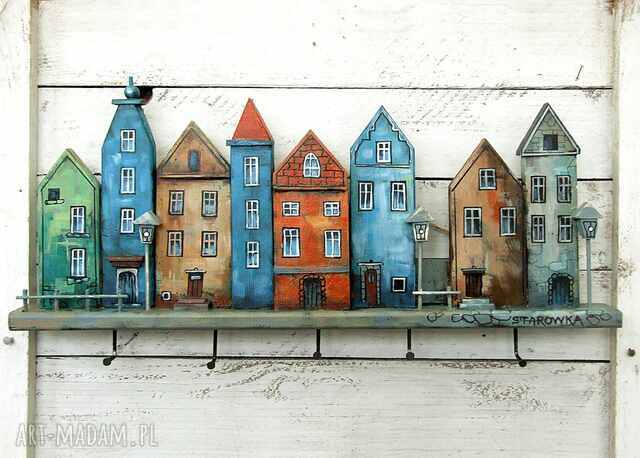 handmade drewniany wieszak na ubrania - kolorowa starówka