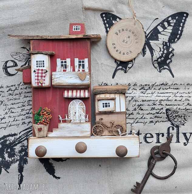 Czerwony domek wieszak na klucze i ubrania
