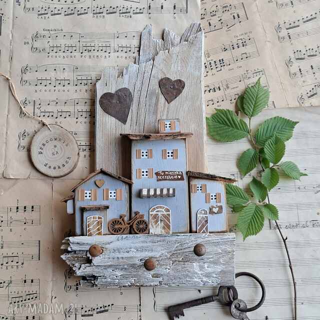 drewniane domki wieszak na klucze