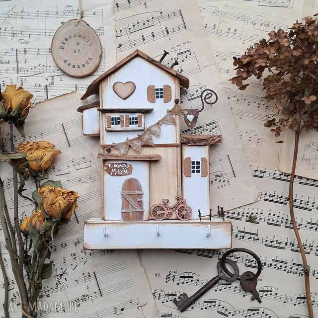 Dla wszystkich wielbicieli drewna i naturalnych dekoracji proponuję rustykany trójwymiarowy wieszak z domkami.