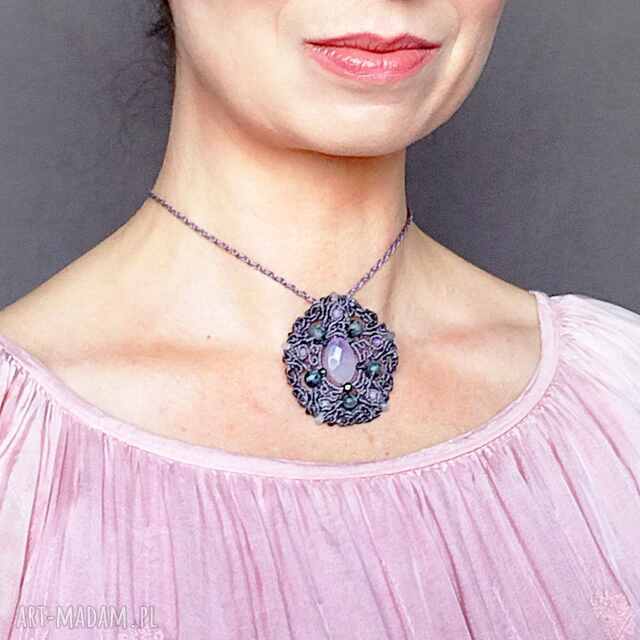 szybka wysyłkaRączka porcelana i srebrna lilia naszyjnik pleciony mikro makrama boho. Wisiorki handmade Rączka, Naszyjnik z porcelanowa rączką, ametyst 4 mm i 3 mm, elegancką385,00 zł