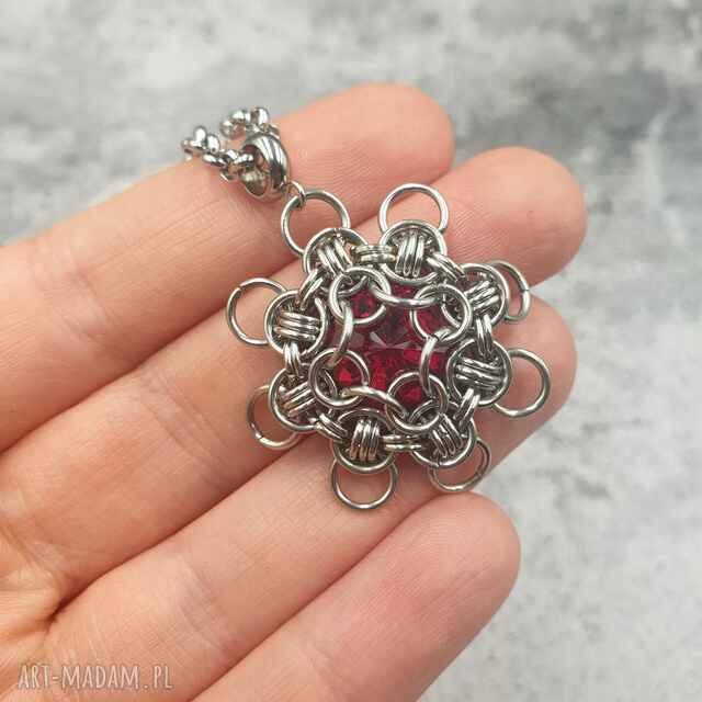szybka wysyłkaAżurowy wisiorek chainmaille- kryształ górski. Ażurowy wisiorek inspirowany łapaczami słońca, Materiały, stal szlachetna110,00 zł