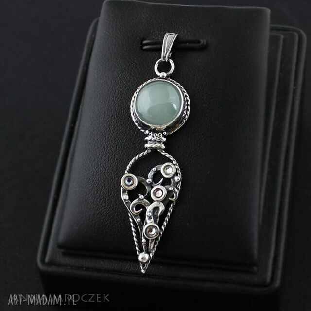 ręczne wykonanie pastelowe pnącze - srebrny wisior z amazonitem i kryształkami