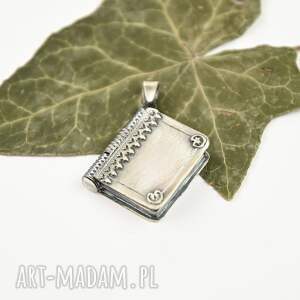 handmade srebrny sekretnik w kształcie książki wisiorki