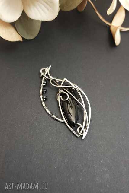 ręczne wykonanie srebrny wisiorek z czarnym onyksem - elegancka biżuteria handmade