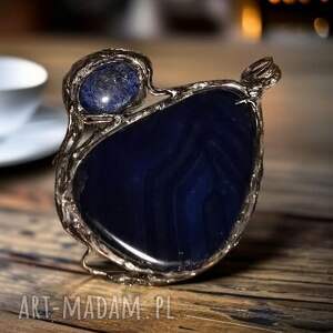 Unikatowy Wisior z Agatem kobaltowym w Technice Tiffany - Biżuteria Ręcznie Robiona