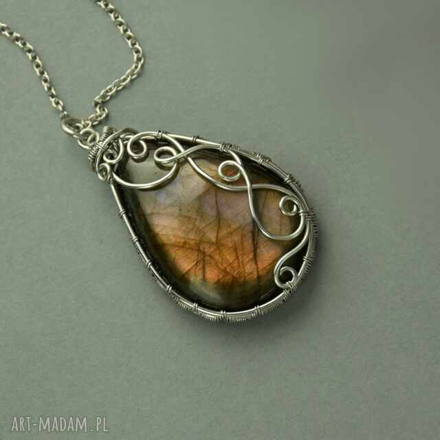szybka wysyłkaMały wisiorek labradoryt wire wrapping oryginalny. Mały wisiorek z labradorytem, Długość całkowita wisiorka ok, 2,2cm, smog186,00 zł