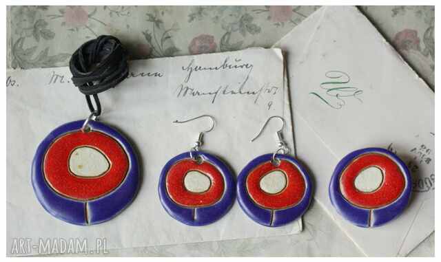 Zestaw karminowy - wisior kolczyki na sztyfcie. A następnie szkliwiony w temperaturze 1260 stopni c, W karminowym kolorze na rzemieniu126,00 zł