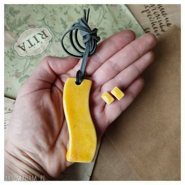 Zestaw biżuterii z czerwonym oczkiem. Komplet biżuterii złożony z wisiorka ceramicznego, broszki oraz kolczyków86,00 zł