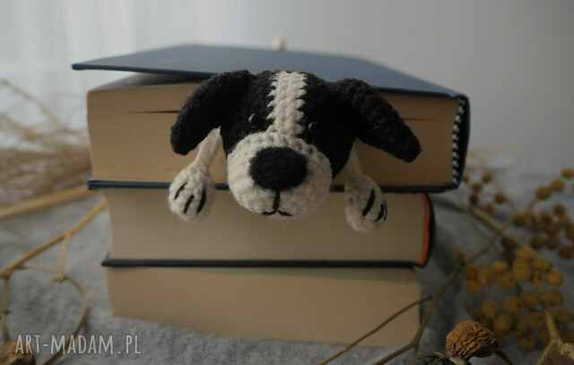 Zakładka do książki z sympatycznym pieskiem wykonana z włóczki na szydełku.