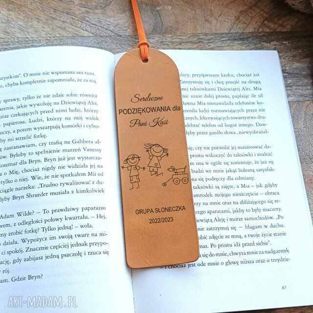 Idealnym prezentem dla nauczyciela, zarówno na zakończenie roku szkolnego, jak i na Dzień Nauczyciela, jest ręcznie wykonana skórzana zakładka do książki, ozdobiona grawerem życzeń od całej klasy.