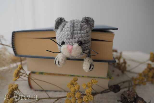 Zakładka do książki z sympatycznym kotkiem wykonana z włóczki na szydełku.