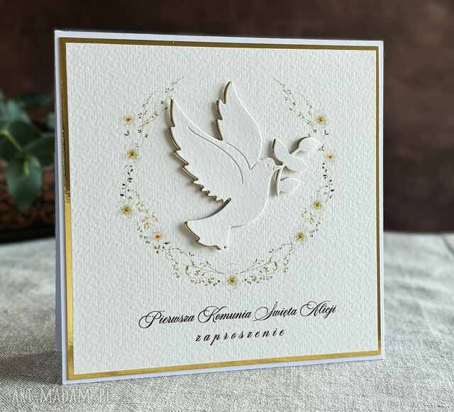 Eleganckie, ręcznie robione, personalizowane zaproszenia komunijne.