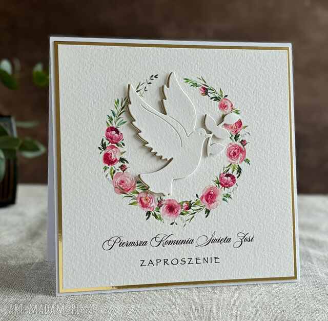 Eleganckie, ręcznie robione, personalizowane zaproszenia komunijne.